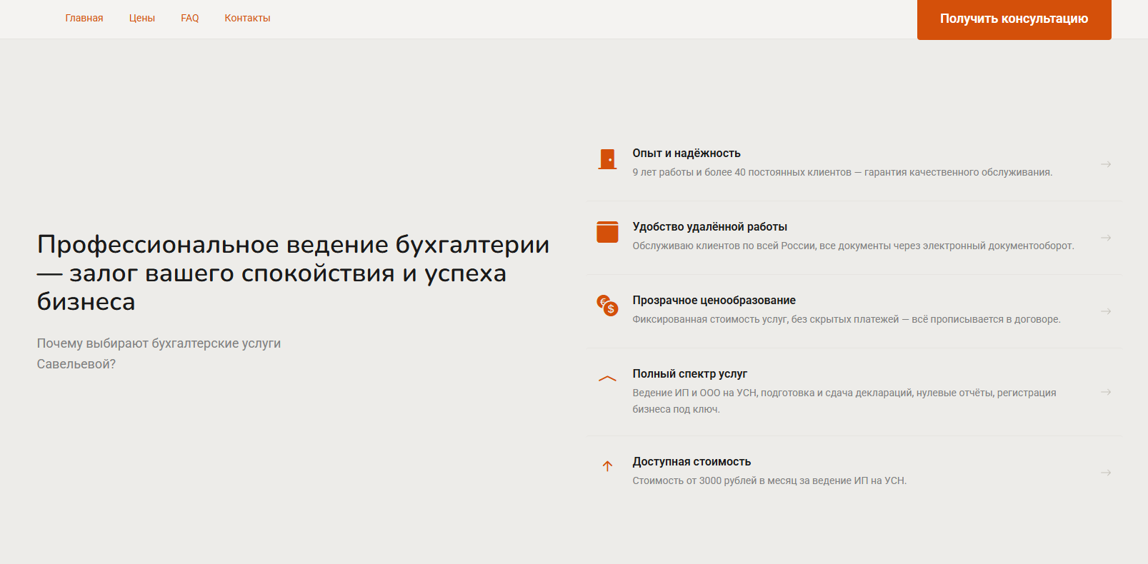 Хотелось выйти из этой логики и получать клиентов которые уже понимают стоимость нормальной бухгалтерии и приходят не за самым дешёвым предложением. Своего сайта не было, казалось дорого и непонятно с чего начать.