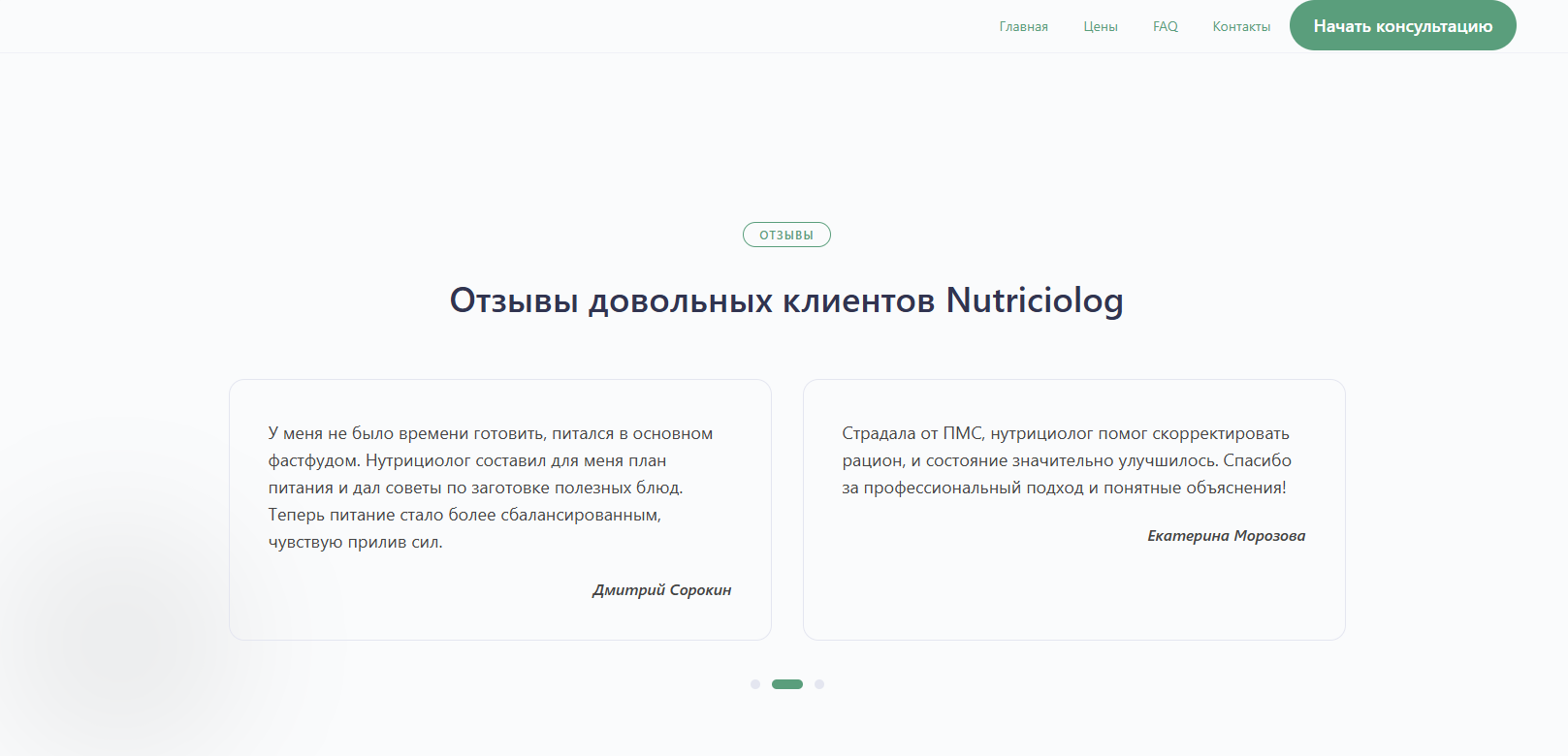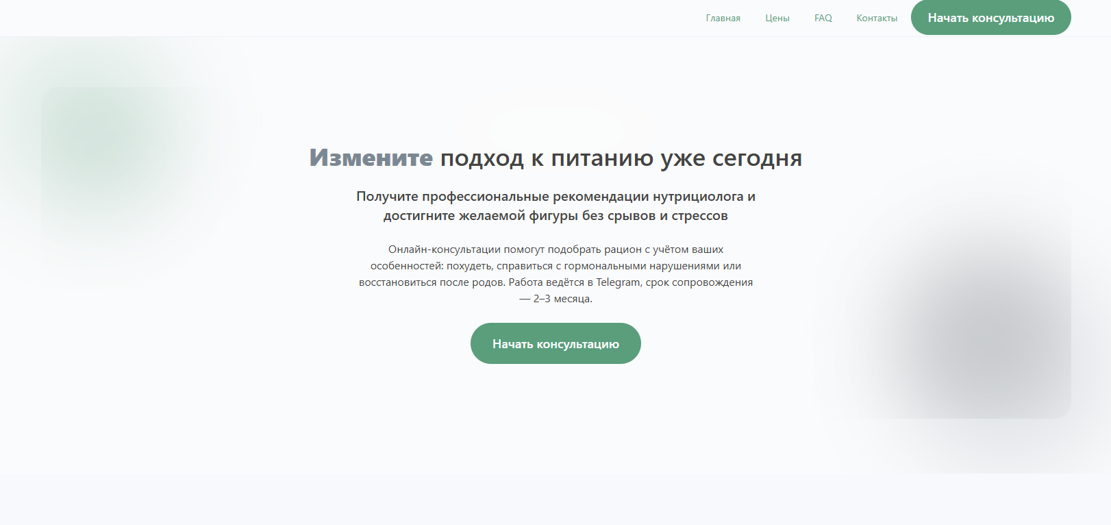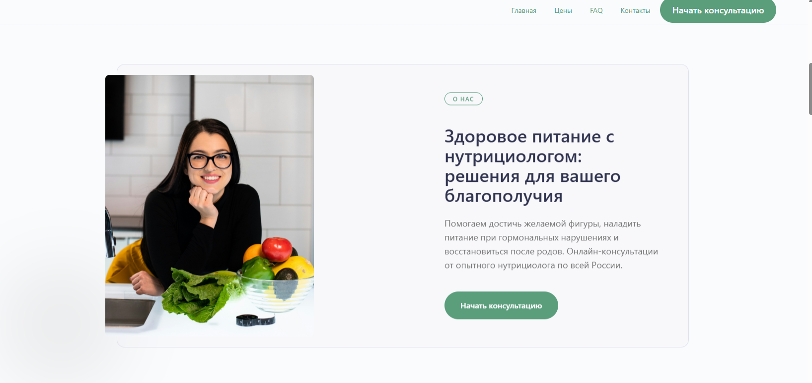 Лендинг для диетолога: Пример страницы для продажи услуг диетолога