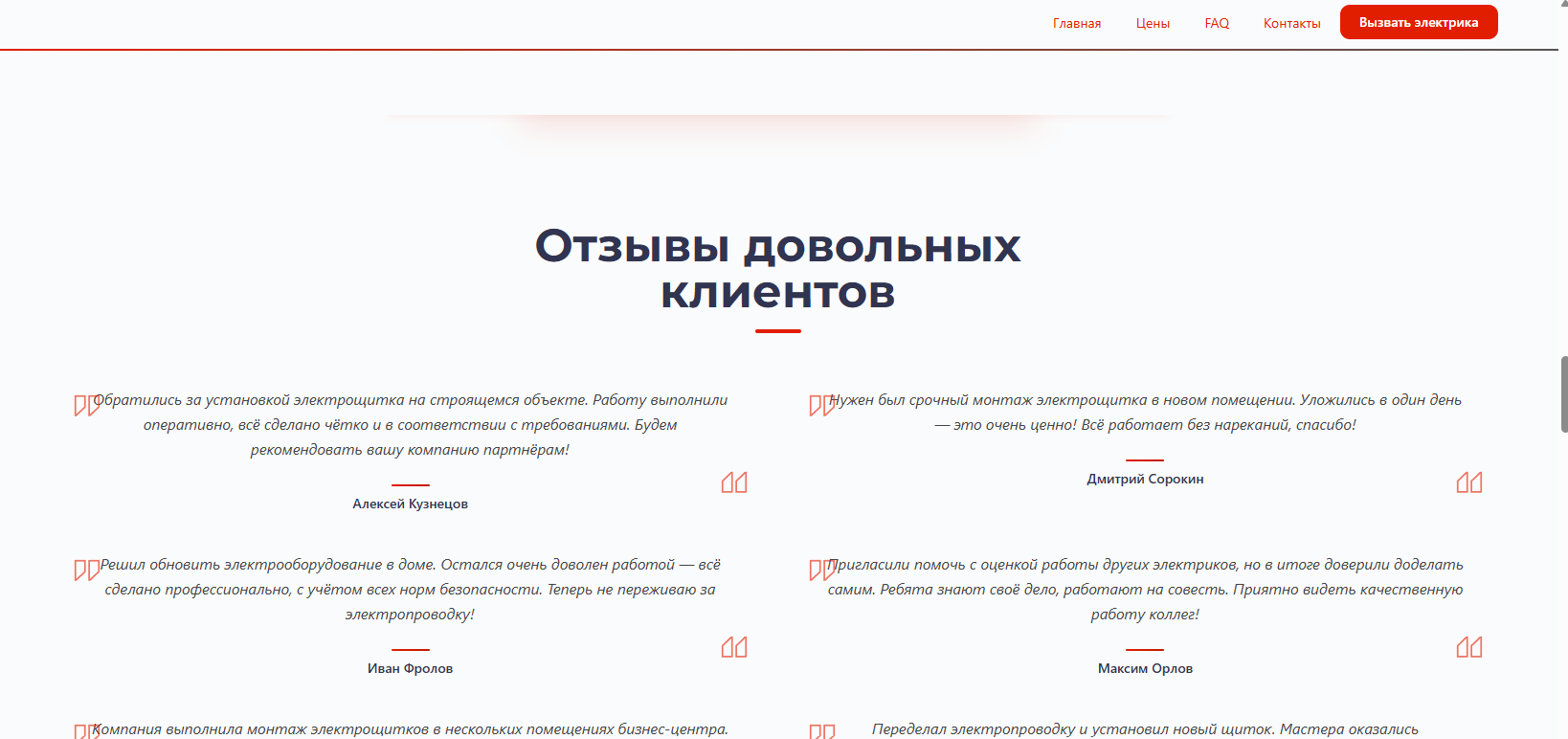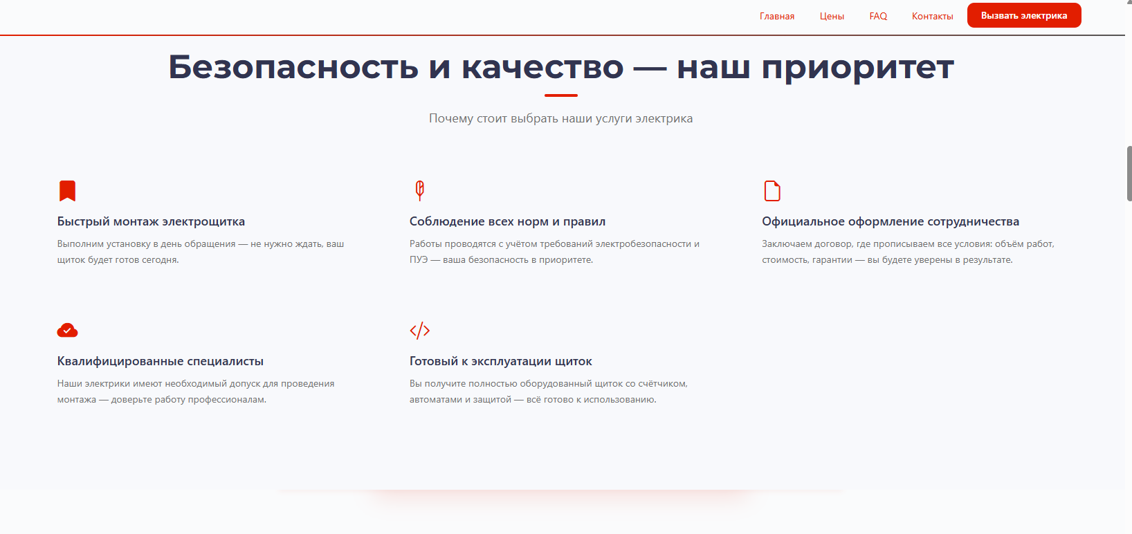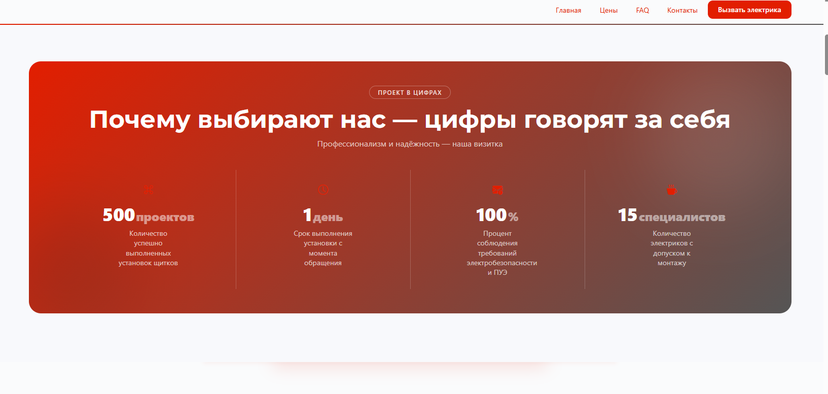Заявки приходили нестабильно: в одни недели звонков было много, в другие тишина. Мастер понимал, что люди ищут электрика в интернете, но без сайта попасть в эту выдачу невозможно. Заказывать разработку у фрилансера это дорого и долго, а разбираться с конструкторами не было ни времени, ни желания.